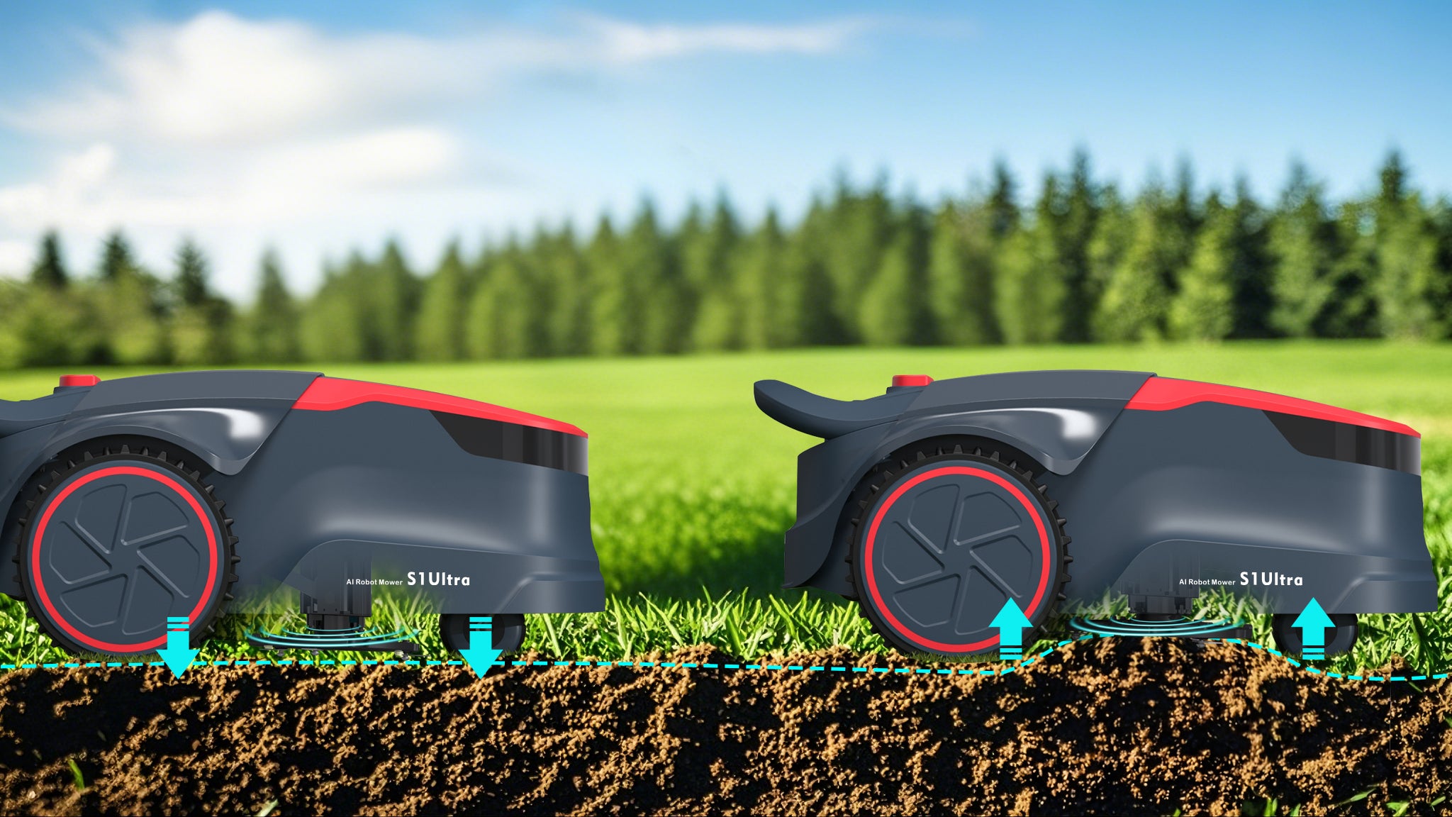 BladeMate S1's advanced floating cutting disc adapts to terrain changes, The blades lift to prevent damage to your lawn and mower, then seamlessly return to the preset height, ensuring a uniform cut.