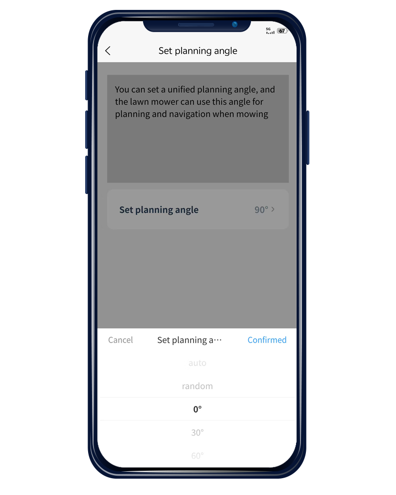 Personalize your lawn's look with customizable mowing direction via the APP. Choose specific direction for a tailored finish or opt for random to maintain uniformity.