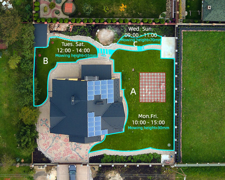 - Set Schedule and Height for Each Zone: Set individual mowing schedule and height for every part of your lawn.